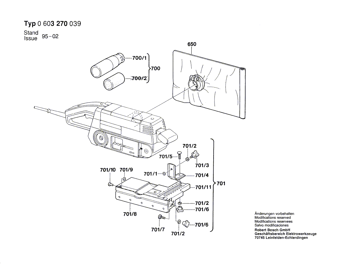 Weitere BOSCH Ersatzteile des Gerätes 3270D (Bandschleifer) mit der Typennummer 0603270039 finden Sie in der nachfolgenden Darstellung und im Dropdown zu Ihrer Auswahl: