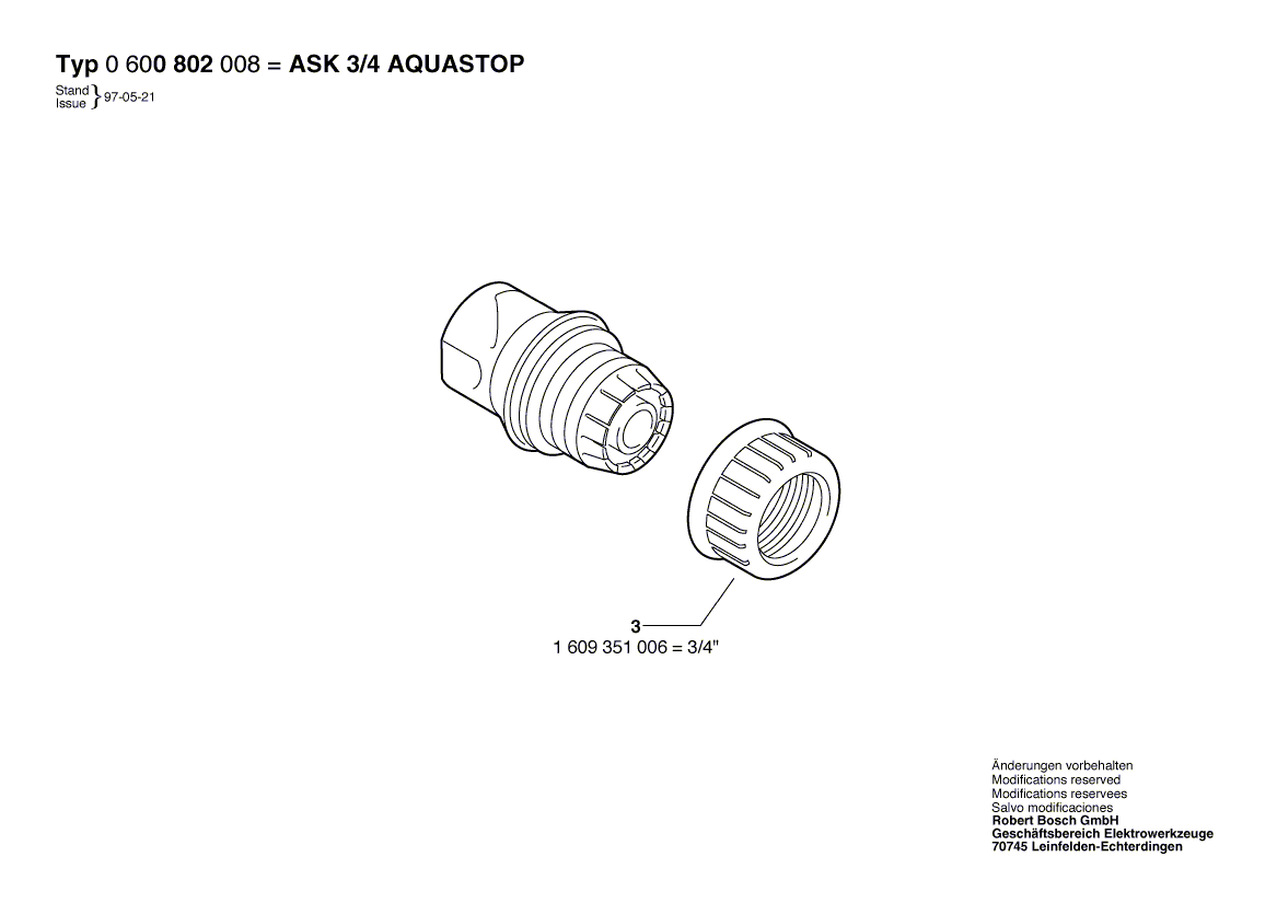 BOSCH ASK 3/4 AQUASTOP - 0600800008
