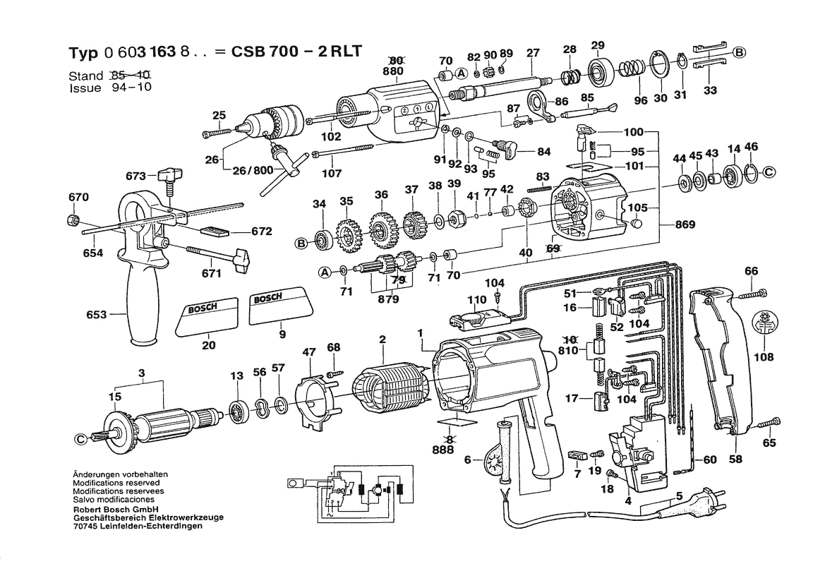 Weitere BOSCH Ersatzteile des Gerätes CSB 700-2 RLT (Schlagbohrmaschine) mit der Typennummer 0603163842 finden Sie in der nachfolgenden Darstellung und im Dropdown zu Ihrer Auswahl: