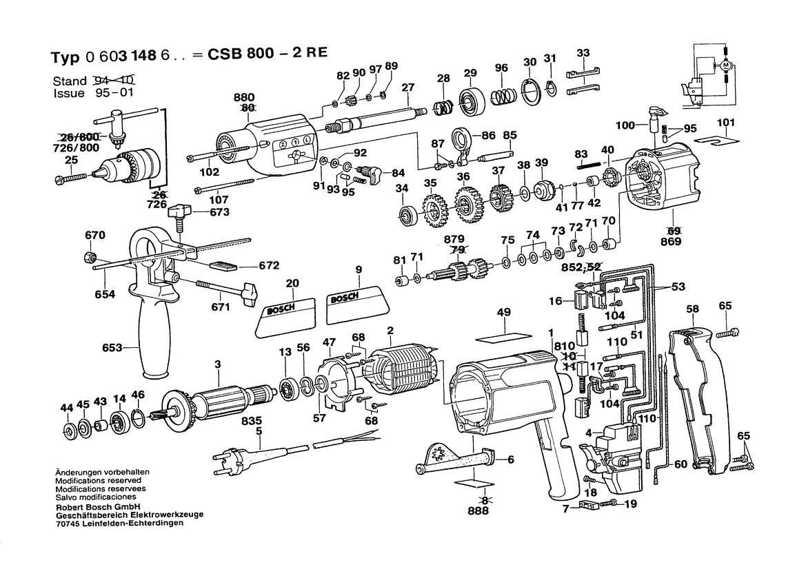 Weitere BOSCH Ersatzteile des Gerätes CSB 800-2 RE (Schlagbohrmaschine) mit der Typennummer 0603148633 finden Sie in der nachfolgenden Darstellung und im Dropdown zu Ihrer Auswahl: