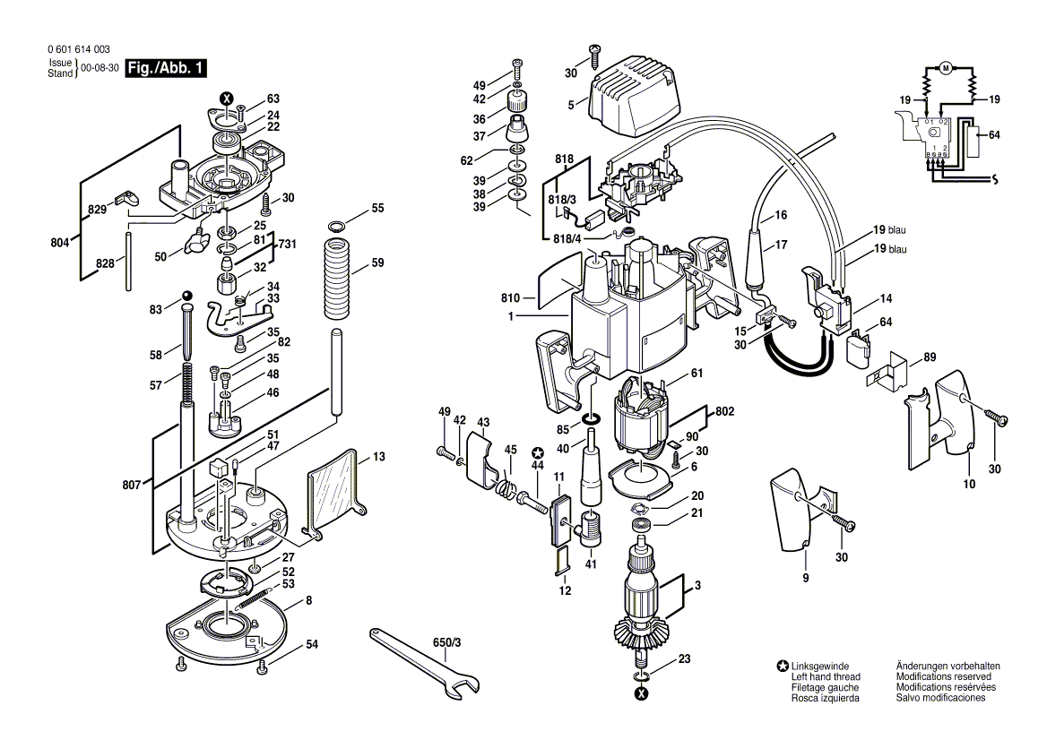 BOSCH Einmaulschlüssel SW19 | Ersatzteile für GOF 900 A | 1907950511