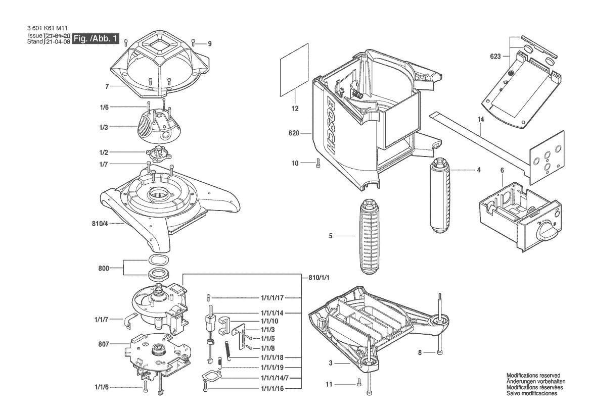 Weitere BOSCH Ersatzteile des Gerätes GRL800-20HV (Baulaser) mit der Typennummer 3601K61M11 finden Sie in der nachfolgenden Darstellung und im Dropdown zu Ihrer Auswahl: