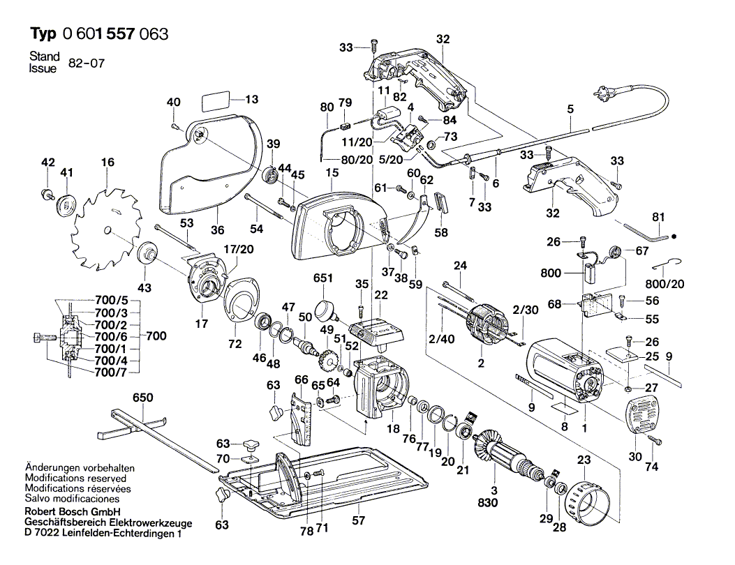 Weitere BOSCH Ersatzteile des Gerätes Handkreissäge mit der Typennummer 0601557063 finden Sie in der nachfolgenden Darstellung und im Dropdown zu Ihrer Auswahl: