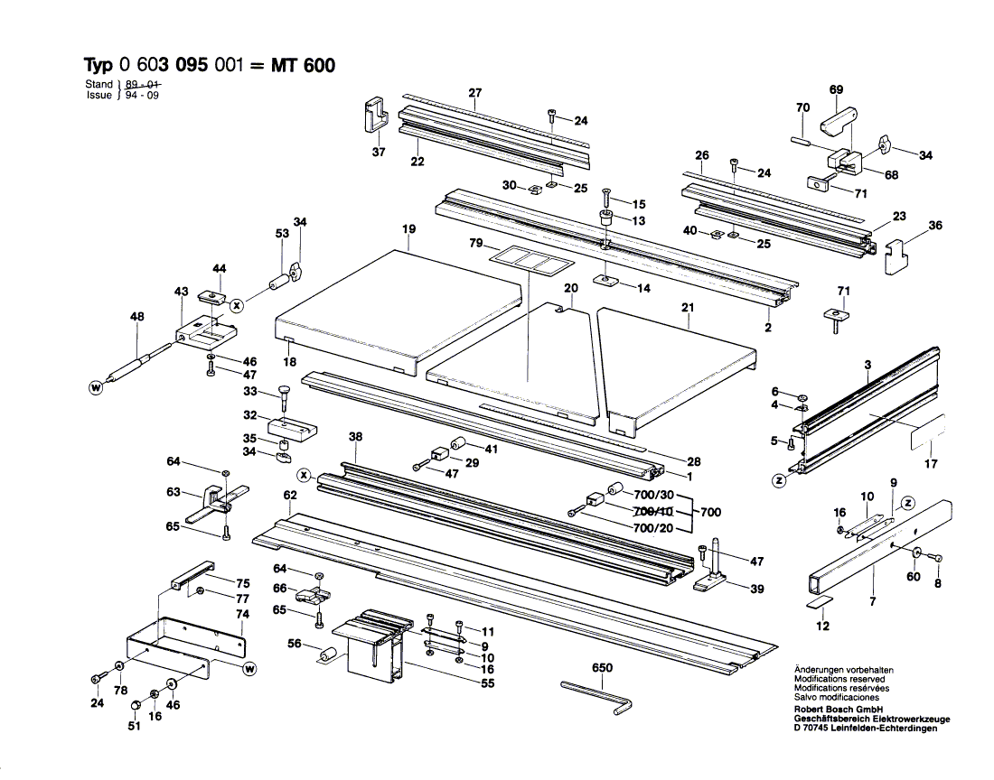 Weitere BOSCH Ersatzteile des Gerätes MT 600 (Sägetisch) mit der Typennummer 0603095001 finden Sie in der nachfolgenden Darstellung und im Dropdown zu Ihrer Auswahl: