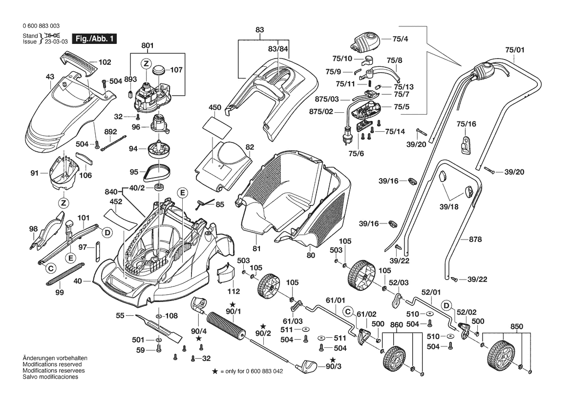 Weitere BOSCH Ersatzteile des Gerätes ROTAK 40 POWER (Rasenmäher) mit der Typennummer 0600883003 finden Sie in der nachfolgenden Darstellung und im Dropdown zu Ihrer Auswahl: