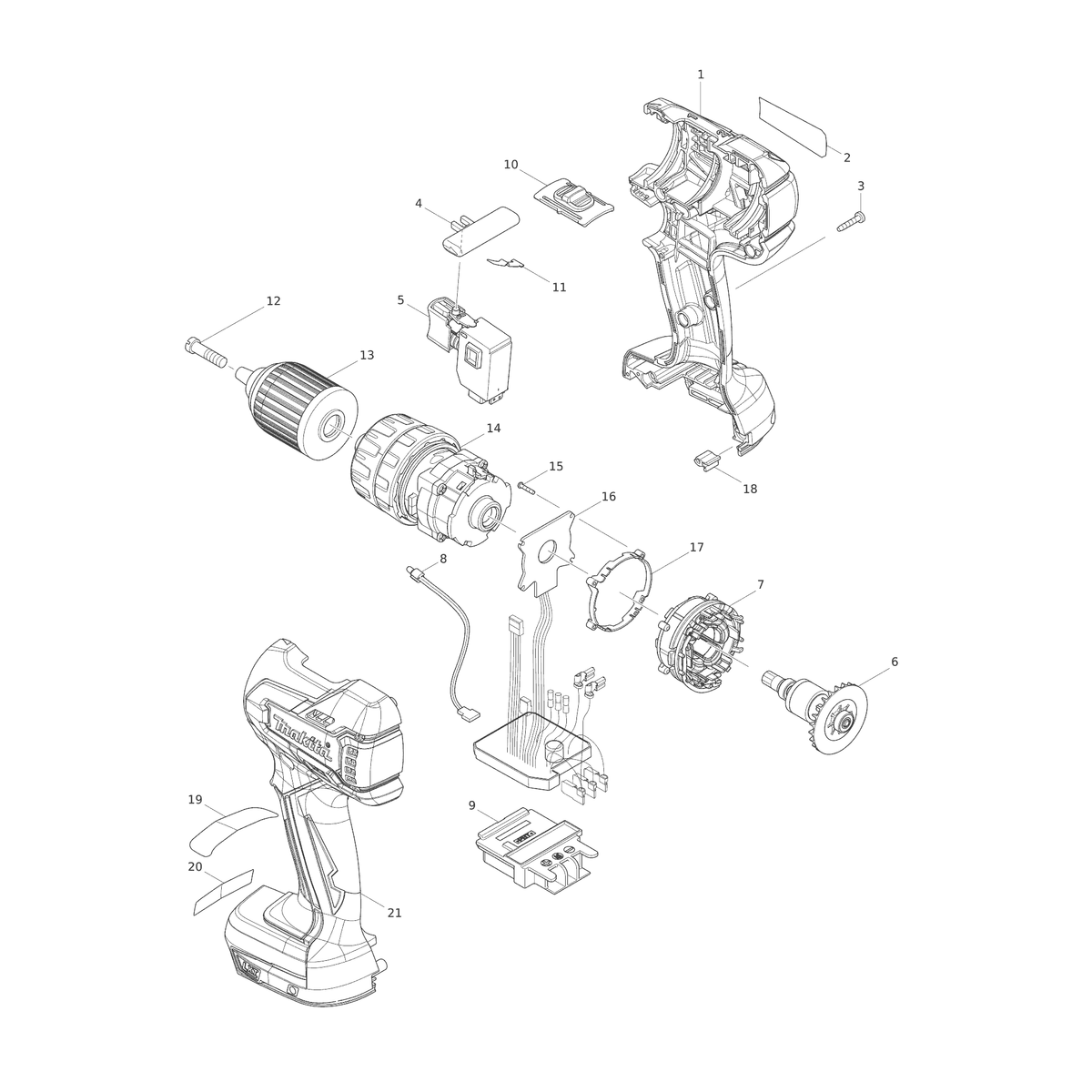MAKITA LED-Schaltung | Ersatzteile für DHP459 | 620163-2