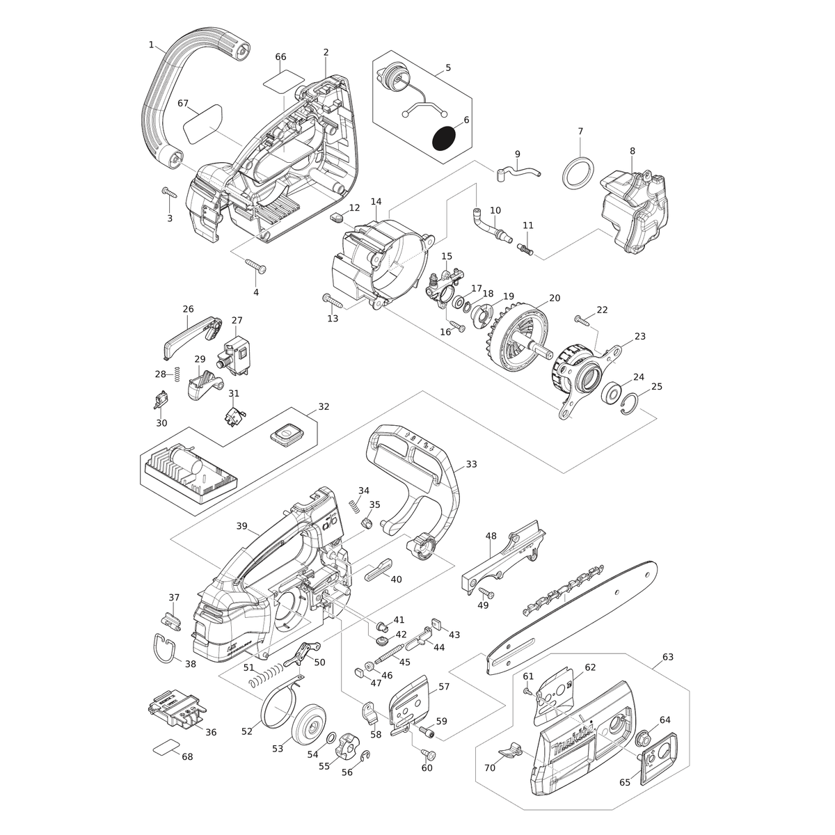 Weitere MAKITA Ersatzteile des Gerätes DUC254 (Akku-Kettensäge) mit der Typennummer DUC254 finden Sie in der nachfolgenden Darstellung und im Dropdown zu Ihrer Auswahl: